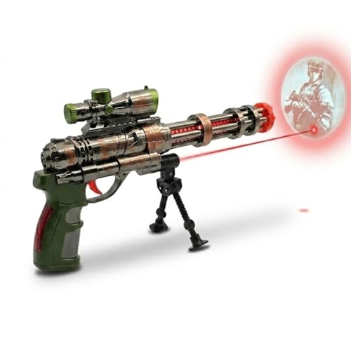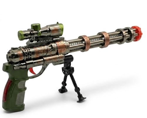 Generic - Military Gatling Gun Toy for Kids – 30cm Electronic Machine Gun with Rotating Barrel, Realistic Combat Sounds, Flashing Lights, and Built-in Soldier Projection – Includes Detachable Tripod