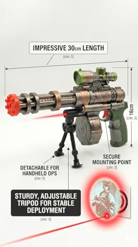 - [Stable & Portable Design]: Comes with a foldable, detachable tripod for stationary defense or can be held by hand for mobile operations. Large 30cm size makes it a dominant piece in any toy armory.