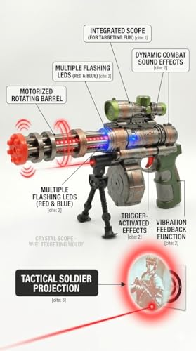 - [Action-Packed Realism]: Experience the thrill of battle with a motorized rotating barrel and rapid-fire vibration that mimics a real Gatling gun. Perfect for immersive role-play and "Shatour" missions.