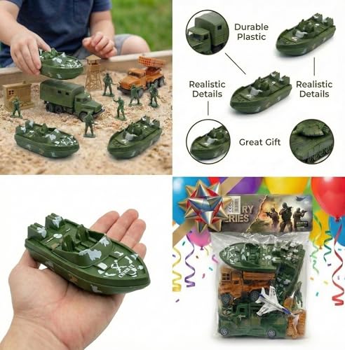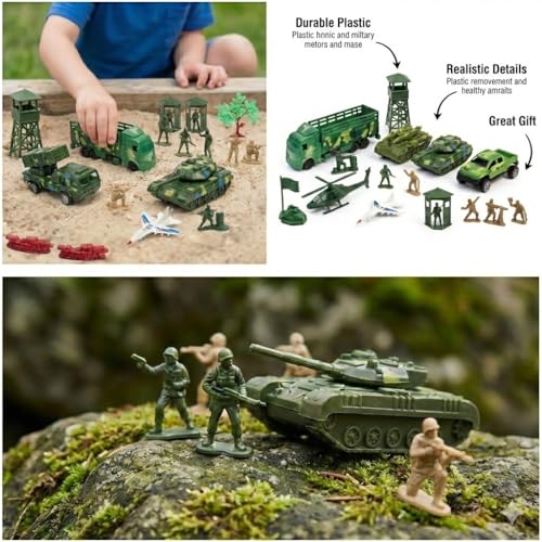 - All-in-one military kit for kids: including numerous green and red soldiers, plus tanks, planes, cars, and flags -- for an action-packed realistic play experience!