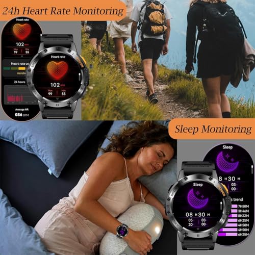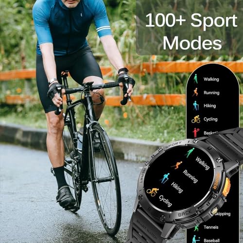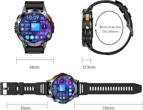 - 【Military-Grade Durability & IP68 Waterproof】 This Military-grade smartwatch built to withstand the toughest environments, Designed for extreme temperatures, dust resistance, and salt spray, it guarantees durability against shocks, water, and dust. With an IP68 waterproof rating, it’s perfect for everyday use like handwashing, showering, or rainy hikes, making it a reliable companion for both outdoor adventures and rugged work conditions.