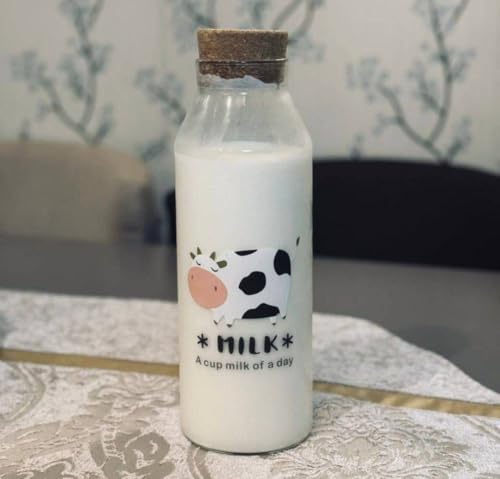 Generic - Milk Bottle with Modern and Unique Cow Design, Made of High Quality Clear Glass, Elegant Wooden Lid, Perfect for Keeping Milk, Juices, Water and Decorative.(1 Piece 1200ml)
