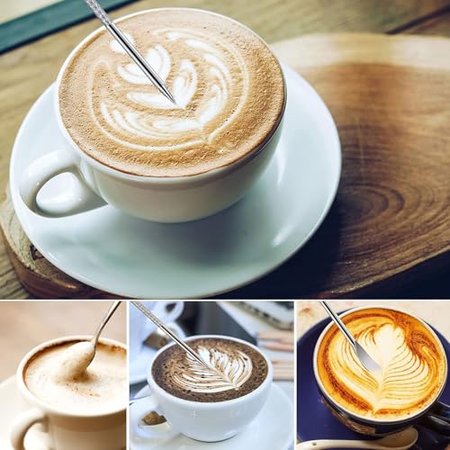- تصميم إنساني: تسمح لك الخطوط المزدوجة لكوب البخار بالحليب بالتحكم بدقة في سعة الصب، ومع قلم فن اللاتيه، يمكنك بسهولة تصميم أنماط رائعة. باختصار، إنها مناسبة للغاية لرغوة الحليب وتبخيره، مثل صنع الاسبريسو والكابتشينو.