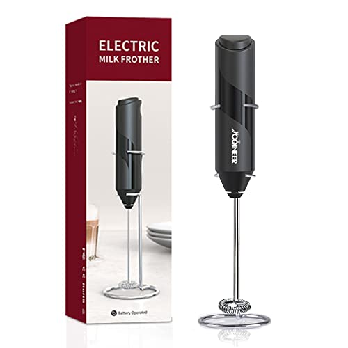 JOQINEER - Milk Frother Handheld Battery Operated Electric Whisk Beater Foam Maker for Coffee, Latte, Cappuccino, Hot Chocolate, Durable Mini Drink Mixer with Stainless Steel Stand Included