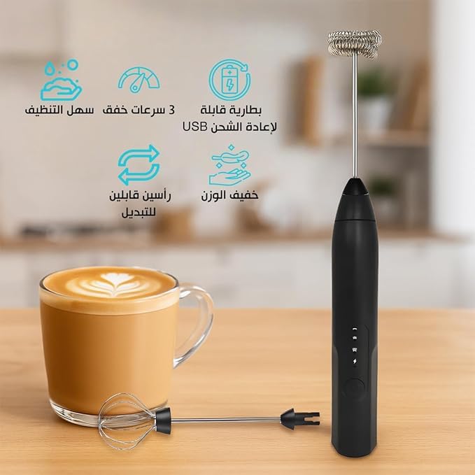 Happy Square - Milk Frother Handheld Electric – 3-Speed USB Rechargeable Mixer & Egg Beater – Stainless Steel Whisk – Foam Maker for Coffee, Latte, Cappuccino, Hot Chocolate – Compact & Easy to Clean (Black)