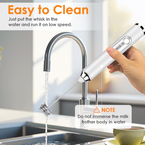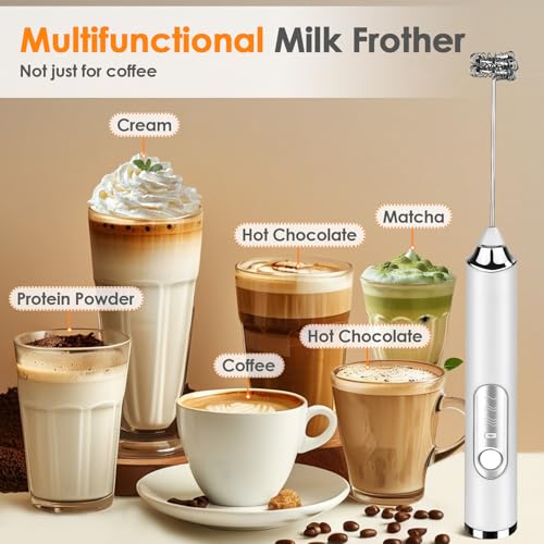 Toughwild - اداة صنع رغوة الحليب محمولة باليد وقابلة لاعادة الشحن مع خفاقتين من الستانلس ستيل و3 سرعات، خلاط شراب، صانع رغوة كهربائي، خلاط يدوي لللاتيه والكابتشينو والماتشا والبيض - ابيض