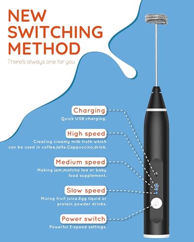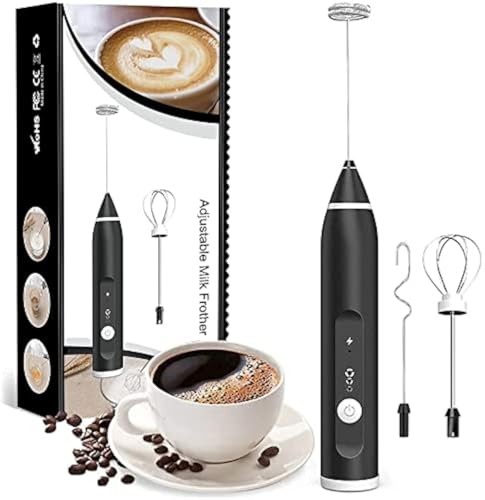 Beslike - Milk Frothers USB Rechargeable Electric Foam Maker W/ 2 Stainless Steel Whisk, Handheld 3 Speeds Egg Beater Drink Mixer Mini Blender for Cappuccinos, Assorted colors