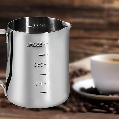 - Features an engraved, easy-to-read internal measurement scale in both ounces and milliliters, allowing precise control over milk volume for perfect latte art and consistent espresso-based drinks every time.