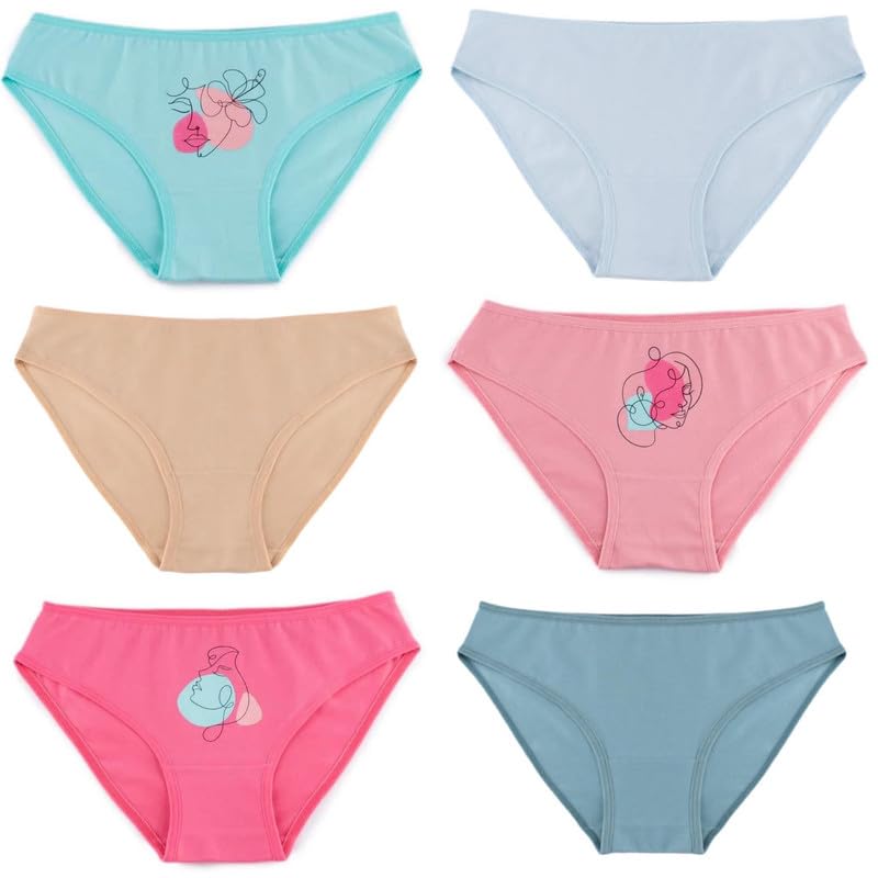 Milk - بانتي بيكيني قطني خفيف للنساء، عبوة من 6 قطع، مقاس M، متعدد الالوان