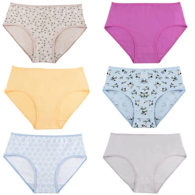 Milk - طقم بانتي خفيف ومتوسط الطول من القطن بتصميم مطبوع للنساء ميلك ملابس داخلية عبوة 6 قطع متعدد الألوان L