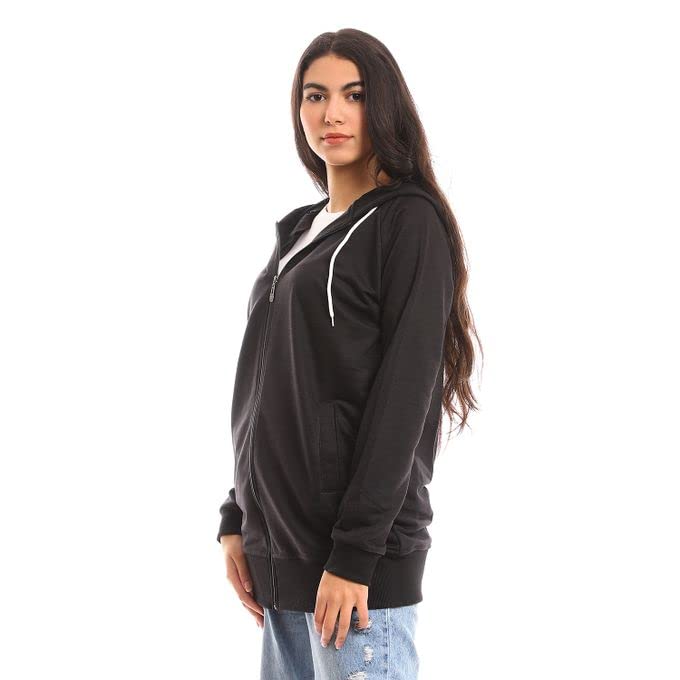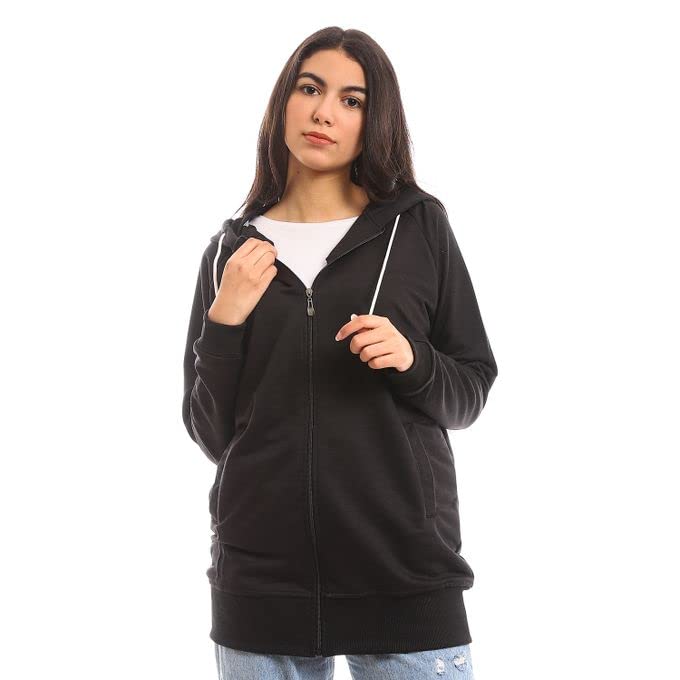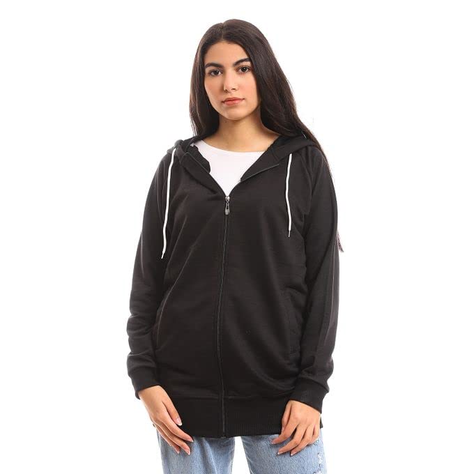 Generic - هودى ميلتون أسود قطن بسوستة من الامام، ياقة عالية جدًا، النساء