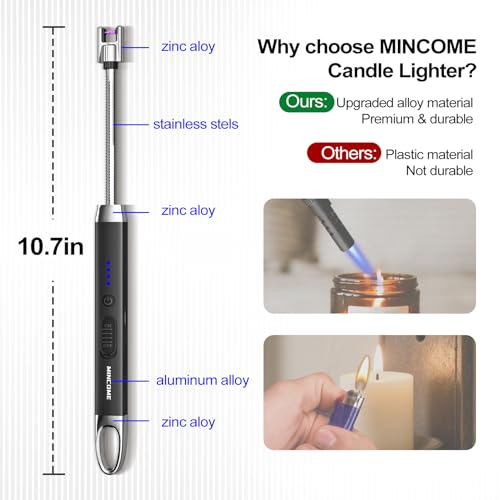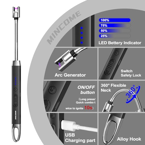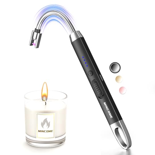 MINCOME - Electric Candle Lighter, USB-C Rechageable Arc Lighters for Camping, Long Lighter with 360° Neck & Safety Switch, Windproof & Flameless lighters for BBQ, Fireplace & Candle Lovers (Black)