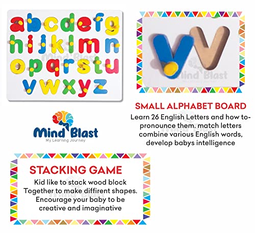 MIND BLAST - MIND BLAST Wooden Small Alphabet Puzzles for Children, Montessori Digital Board Educational Learning Letters Puzzle for Kids |Alphabets (Multicolor)