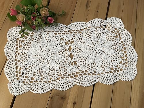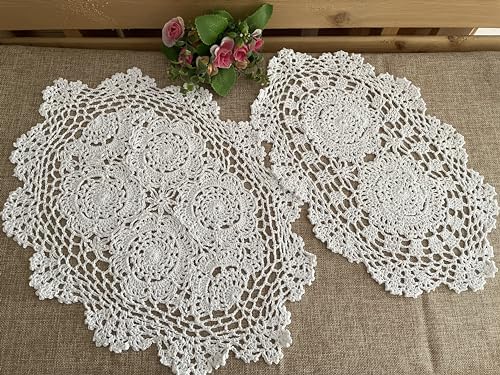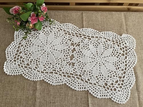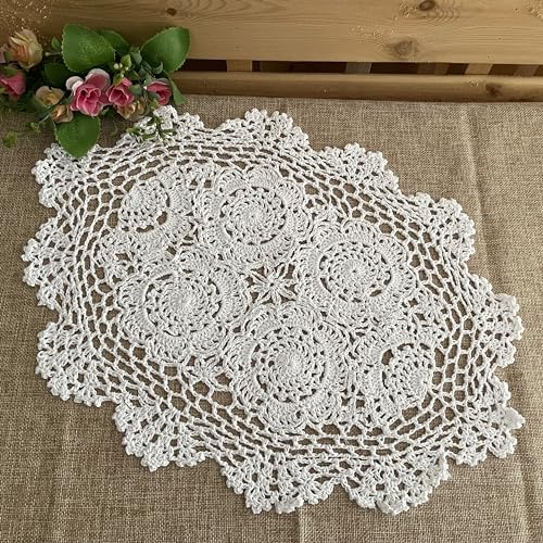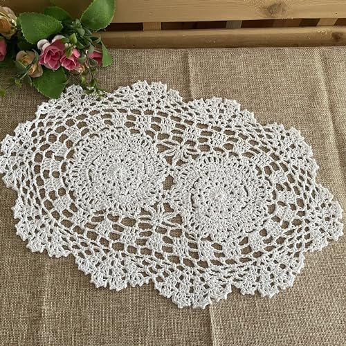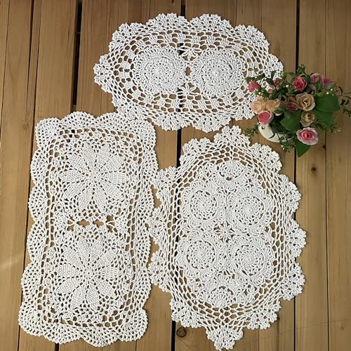 MINDPLUS - MINDPLUS Set of 3 Cotton Hand Crochet Lace Doily Placemats Oval Rectangle Dresser Scarves Coffee Table Runner Farmhouse Boho Decor (White)