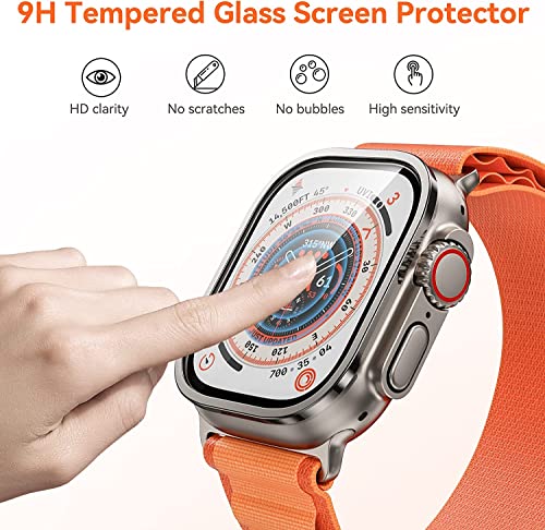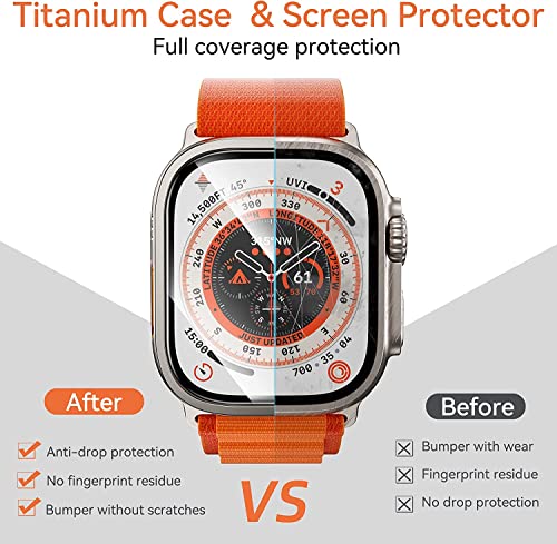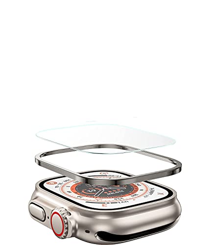 minesk - minesk 9h Tempered Premium Screen Protector for Apple Watch Ultra 49mm with Metal Borders Completely Cover and Around the Screen (Titanium)