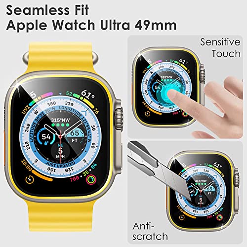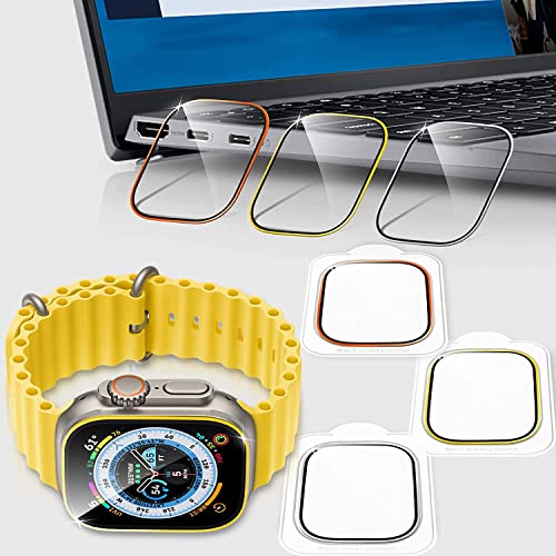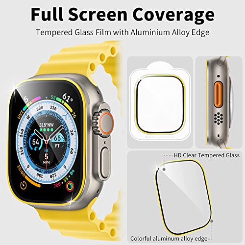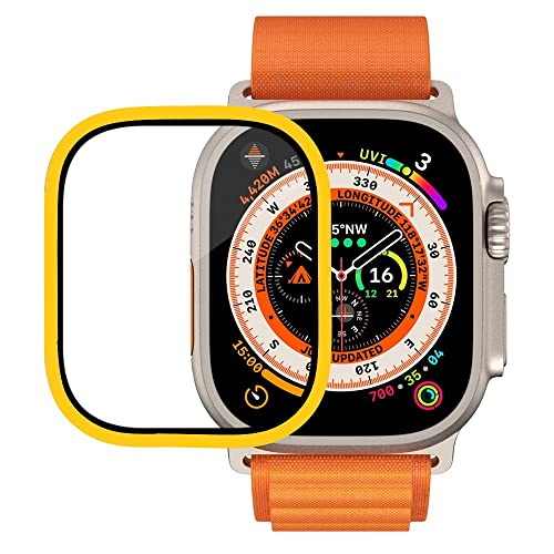 minesk - minesk 9h Tempered Premium Screen Protector for Apple Watch Ultra 49mm with Metal Edges Completely Cover and Around the Screen (Shiny Gold)