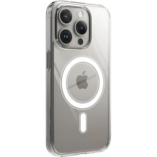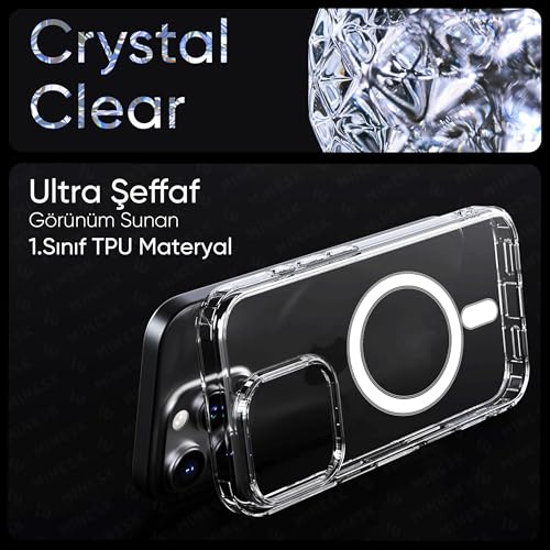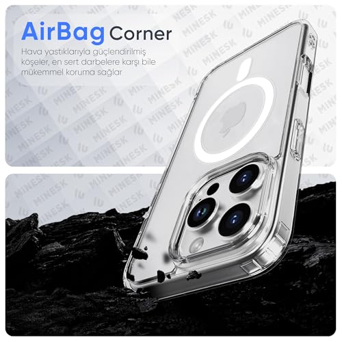 minesk - جراب حماية شفاف متوافق مع موبايل آيفون 15 برو بظهر صلب من البولي كربونات الشفاف ومادة سيليكون ممتصة للصدمات من مينسك (15 برو)