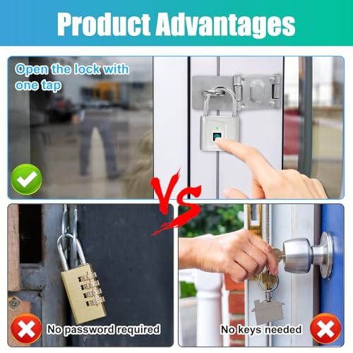 - Widely used: fingerprint lock is suitable for offices, apartments, interior doors, bags, gyms and other scenes and offers you safe and private protection of your items. The product padlock with fingerprint is small and lightweight, powerful and you can store your items with peace of mind.
