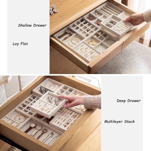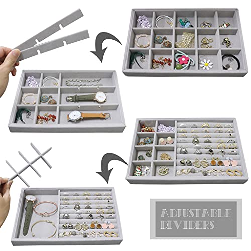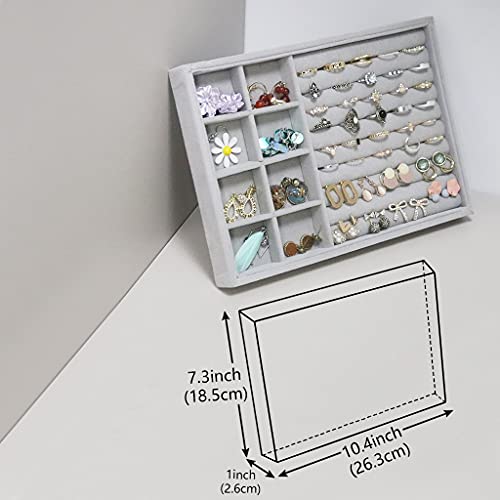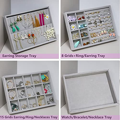 Daga - MINGRI Jewelry Earring Organizer Holder Stackable Jewelry Display Trays, Velvet Jewelry Drawer Inserts Trays, Box Ring Holder Necklace Case, Jewelry Storage for Bracelet Brooch Watch, Set of 4,Gray