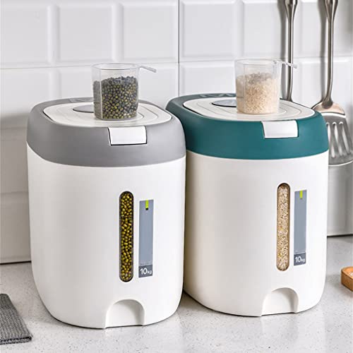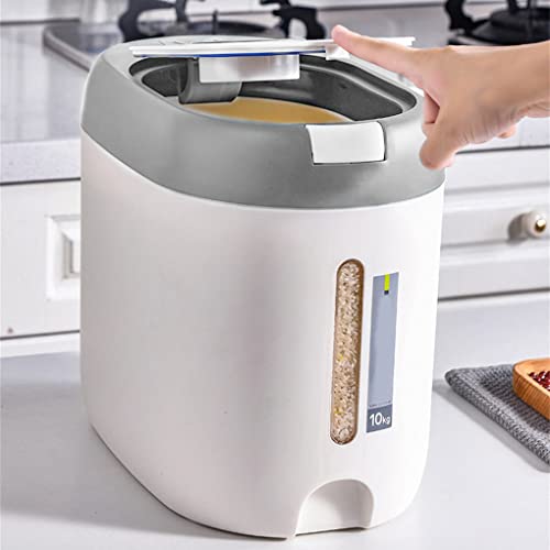Mingtongli - 10kg Rice Dispenser Bucket Moisture Proof Box Airtight Grain Household Food Fruits Container Organizer Measuring Cup, Grey