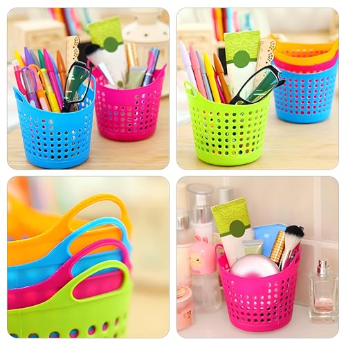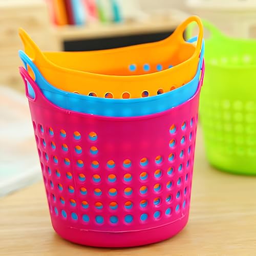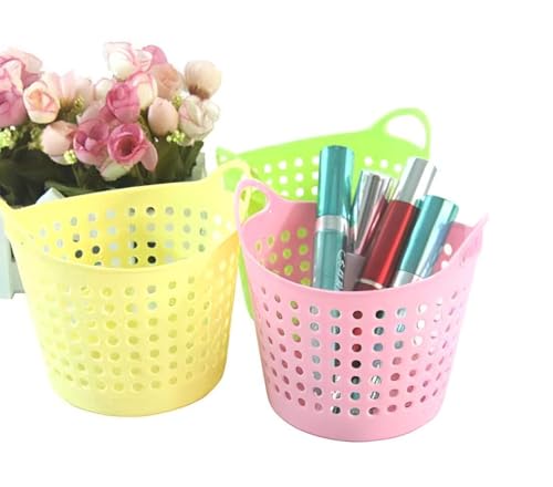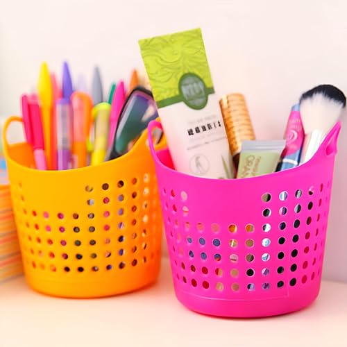 - The desktop storage basket set includes four colorful, round organizers made of durable plastic. These lightweight and flexible baskets feature handles that make them easy to transport and stack. Their vibrant colors add a cheerful touch to any workspace or home office, making them not just functional but also stylish. Each basket is designed to help you keep a tidy environment while holding a variety of items like pens, markers, and stationery neatly organized.
