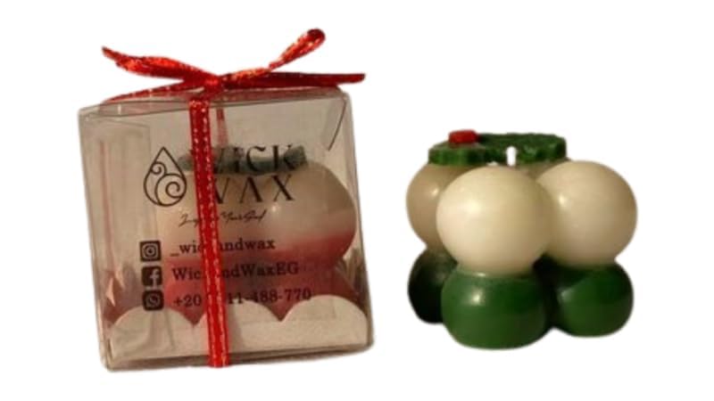wick and wax - شمع بدون رائحة بتصميم صغير الحجم بنمط فقاعات لديكور المنزل، لون أبيض وأحمر