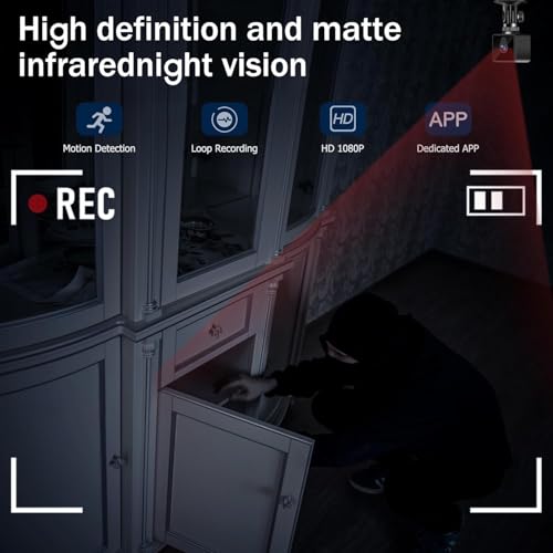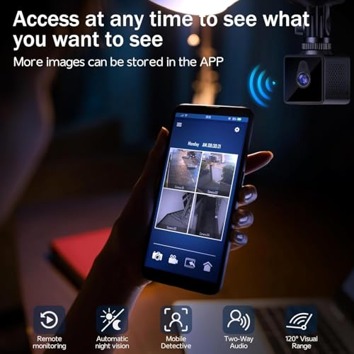 - Motion detection alarm: When this mini camera detects that someone is moving, it records a motion alarm video and sends you an alarm notification as soon as possible, so you know the exceptions within 0.5 seconds. Then you can log in to the app that comes with the mini camera to see and hear what is going on in real time and do not worry about missing something important