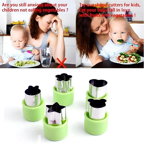 - The veggie cutter shape set includes 9 mini molds and biscuit molds specifically designed for children, making it an excellent tool for baking and prepping food. This set is perfect for transforming ordinary meals into fun and creative forms kids will love, promoting their engagement during meal time and encouraging healthy eating habits.