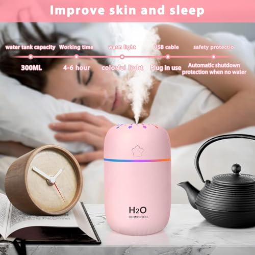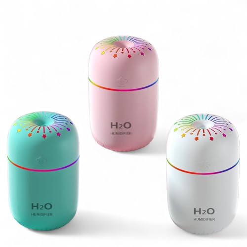 Generic - مرطب هواء صغير برذاذ بارد 3 في 1 مع موزع زيوت عطرية بالموجات فوق الصوتية، خزان 300 مل، 7 ألوان LED متغيرة، وضعان للرذاذ، مرطب هواء هادئ للغرفة والنوم، مثالي للمنزل، المكتب، السيارة (اخضر)