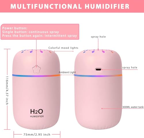 - 🚗 تصميم صغير وسعة مثالية 300 مل: حجم مضغوط وسهل الحمل يجعله مناسبًا للاستخدام في المنزل، المكتب، غرفة النوم أو حتى السيارة. مع خزان سعة 300 مل يمنحك ساعات طويلة من الترطيب المستمر دون الحاجة لإعادة تعبئة متكررة.