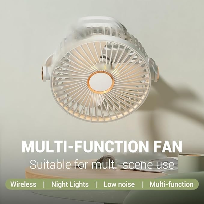 generic - Mini Desk Fan with Night Light, Multifunctional Desktop Fan - Clip Fan, Energy Saving 5 Speeds, 360° Rotation, USB Portable Cooling Fan, Comfortable All Summer