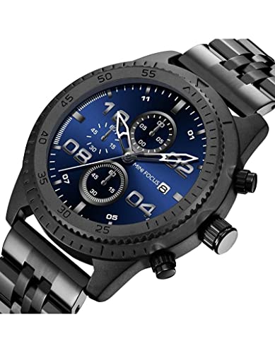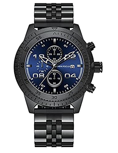 MF MINI FOCUS - ميني فوكس ساعة عملية كاجوال رجال انالوج بعقارب معدن - MF0230G.03، بمينا أزرق، بسوار أسود