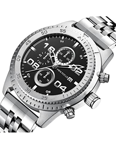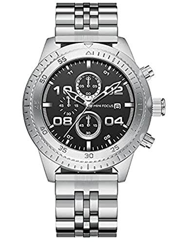 MF MINI FOCUS - ميني فوكس ساعة عملية كاجوال رجال انالوج بعقارب معدن - MF0230G.02، بمينا أسود، بسوار فضة