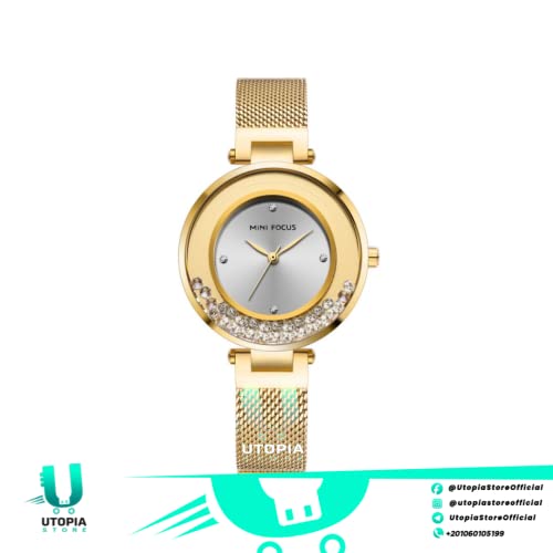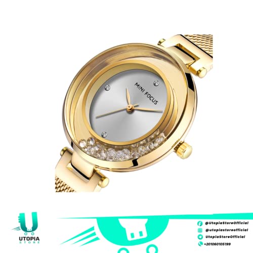 MF MINI FOCUS - Mini Focus Official Watch Women Stainless Steel Band with Strong Water Resistant Dial Dial Women's Premium Watch Official Watches (MF0254L.03 (Gold))