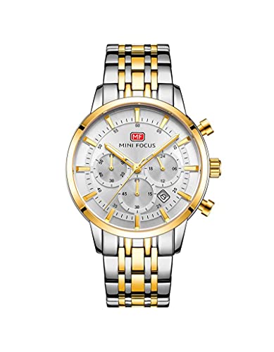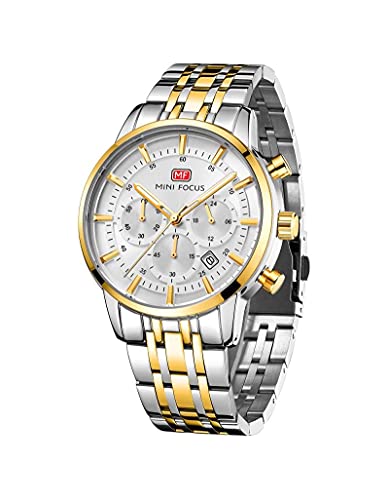MF MINI FOCUS - ساعة من الفولاذ مقاوم للصدأ للرجال من ميني فوكس، فضي وذهبي