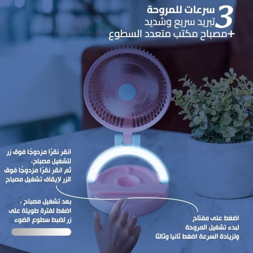 - Mini Folding Electric Fan Portable Lamp with 3 Speeds LED Lights Adjustable Super Sized Wind Energy Energy Energy Saving 3 in 1 Multi-Function Design: Combines Folding Fan and LED Desk Lamp