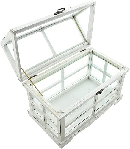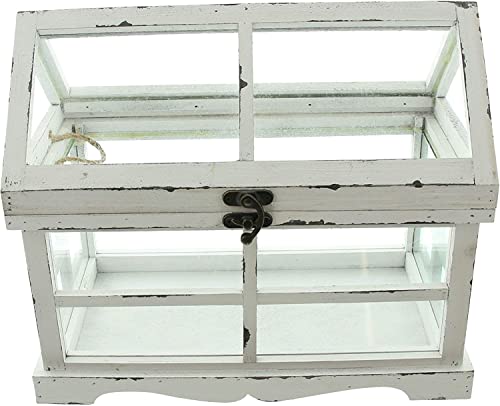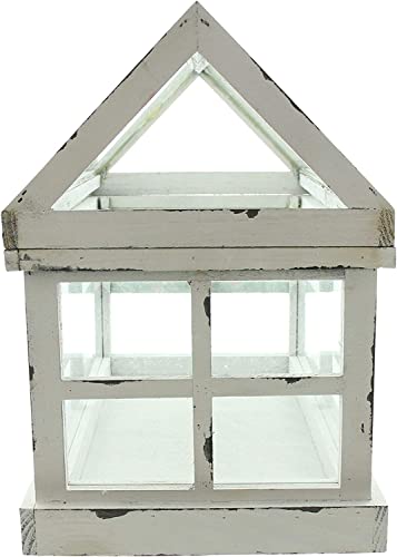 Dekoleidenschaft - Mini Greenhouse "Shabby", 37 x 21 x 31 cm, Small Terrarium, Greenhouse, Indoor Greenhouse, White