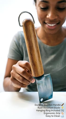 - يوفر المقبض الخشبي المريح قبضة آمنة ومريحة مع لمسة نهائية مصقولة تعزز التحكم وتقلل من إجهاد اليد، مما يجعلها مثالية للمهام الحساسة مثل تقطيع الزبدة أو الجبن أو الفواكه أو تحضير طعام الأطفال.