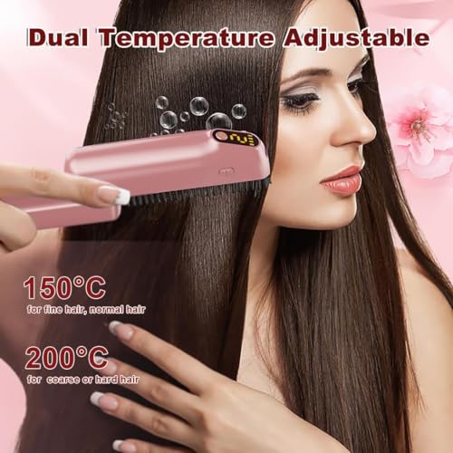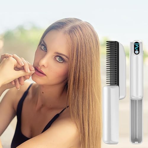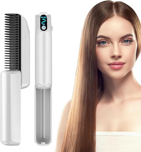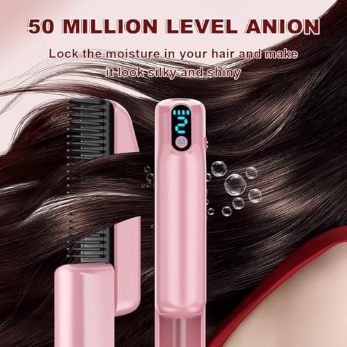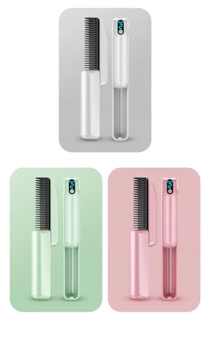 Generic - مشط شعر ساخن صغير - مشط فرد الشعر | فرشاة شعر كهربائية مع أيونات سالبة وشاشة LED | مشط شعر كهربائي ساخن سريع التسخين في 30 ثانية، مشط فرد شعر قابل لإعادة الشحن بقوة 1800