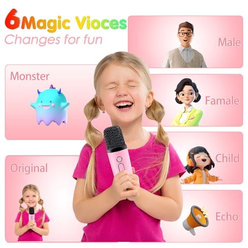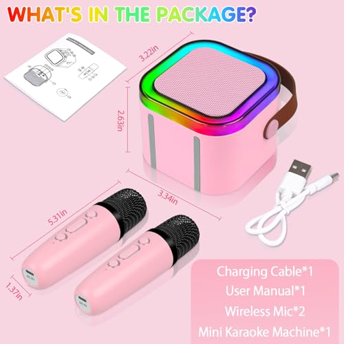 Bogirlson - آلة كاريوكي صغيرة للأطفال والبالغين، مكبر صوت بلوتوث محمول مع 2 ميكروفون لاسلكي، مشغل موسيقى MP3، ألعاب هدايا للبنات بعمر 3 إلى 12 سنة والعائلة في أعياد الميلاد والحفلات المنزلية، وردي