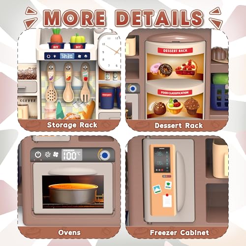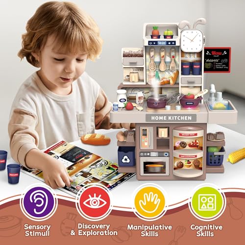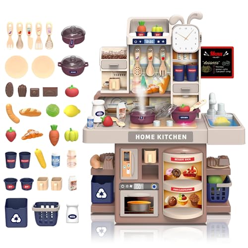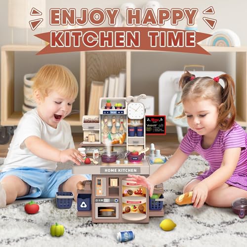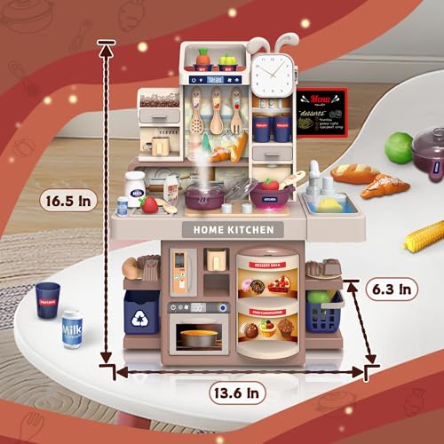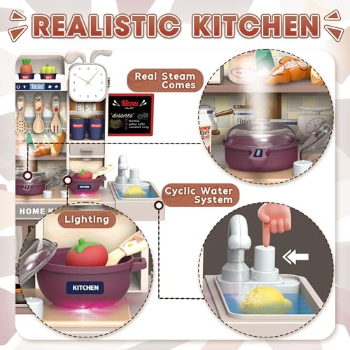 NALACAL - مجموعة مطبخ مصغرة بحجم مناسب للأطفال تشمل مطبخ دمى ولعبة طبخ تظاهرية وحنفية مياه وبخار واقعي مصممة لتعزيز التفاعل ولعب الأدوار للبنات