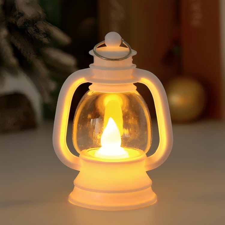 Generic - فانوس ديكور LED صغير بإضاءة دافئة – مصباح زيتي بدون لهب – للمنزل، الطاولات، المناسبات، رمضان والكريسماس (ابيض)