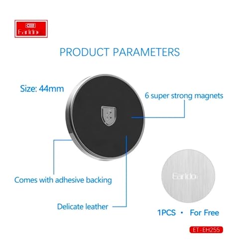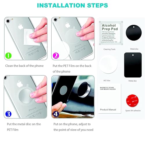 - Metal Plate: Equipped with round metallic plate. The metallic plate for magnet can simply be placed between the device and its case, or the adhesive metal plate can also stick to back of your device directly without case.
