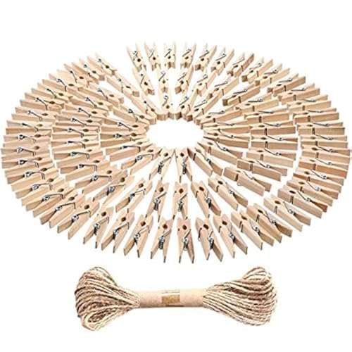 - مجموعة مشابك غسيل خشبية صغيرة: تتضمن العبوة 100 قطعة من مشابك الغسيل اليدوية (لون طبيعي) وخيوط طبيعية بطول 10 أمتار