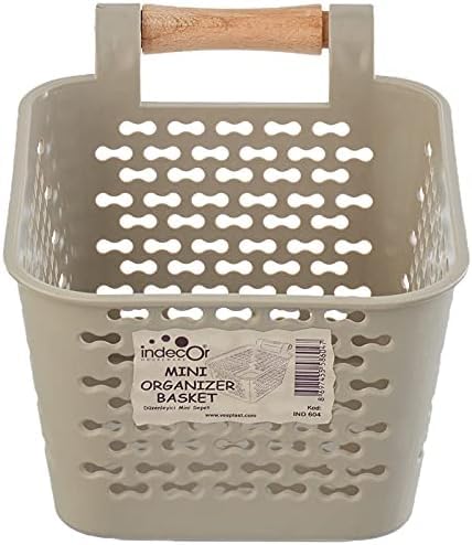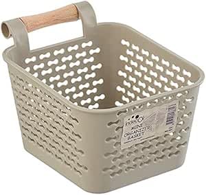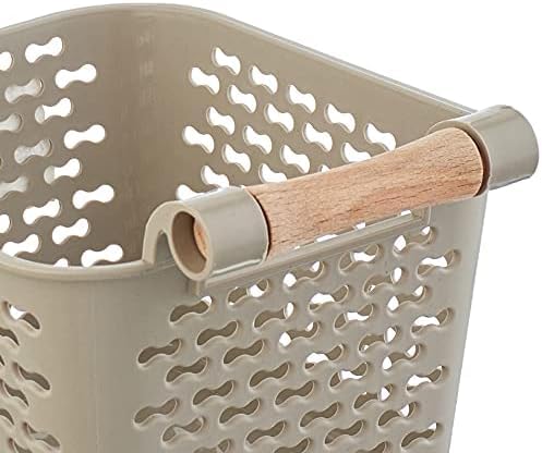 Generic - سلة تنظيم صغيرة بمقبض خشبي، حاوية تخزين بلاستيكية، 10 × 15 سم، بيج