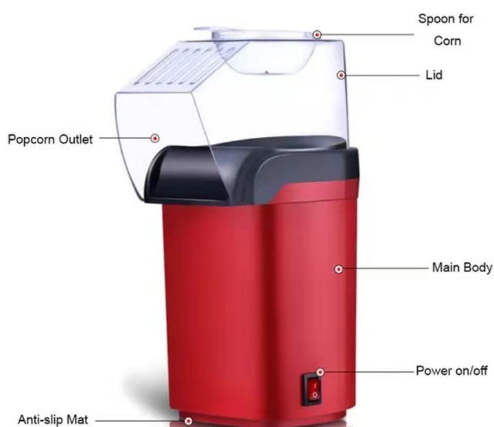Kariosid - mini popcorn machine for home electric small hot air popcorn popper no oil tabletop portable pop corn maker with Measuring Cup Melt Butter - RED (RED)