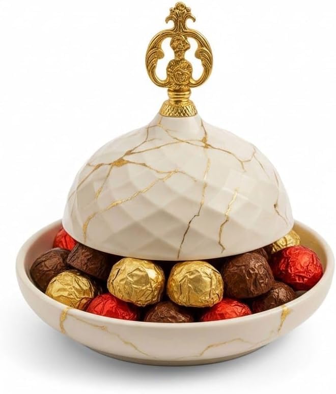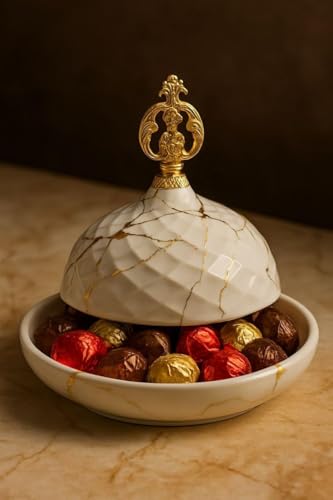 - 【High Quality Porcelain】This small cover is made of fine porcelain, giving it a soft and elegant texture, helping to deliver chocolate and candy in an organized and inviting manner, ensuring its durability with frequent use, while maintaining its beautiful shape and elegant marble design that matches all modern and classic home decor styles. 1 x