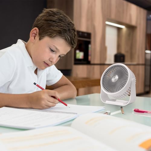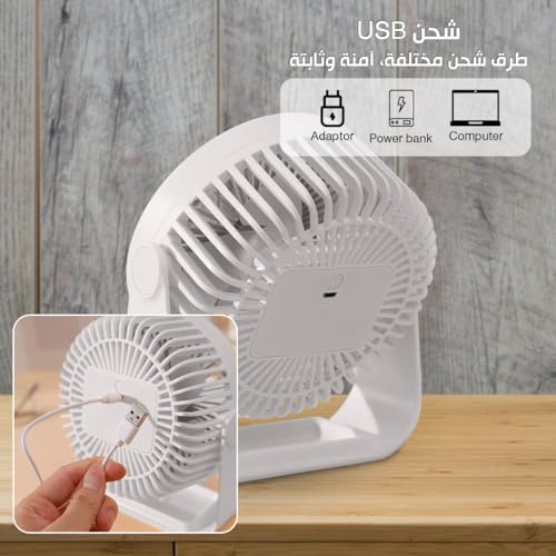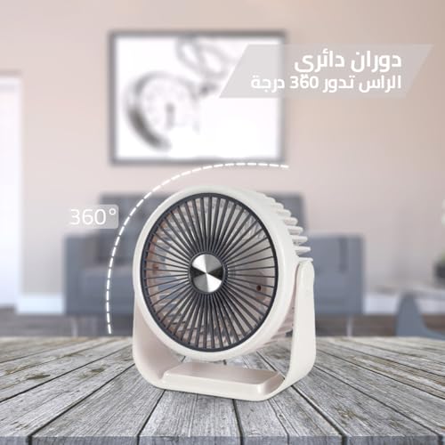- أداء قوي: توفر المروحة تبريدًا قويًا بمحرك 5 وات على الرغم من صغر حجمها، مما يضمن لك البقاء منتعشًا حتى في الأيام الأكثر حرارة.