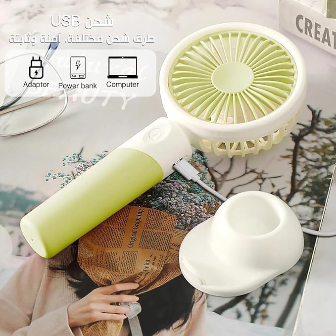 Generic - Mini Portable USB Hand Fan, Usb Fan Portable High Speed, Mini USB Desktop & Handheld Fan, 3-Speed Modes, with Stand (Light Green)