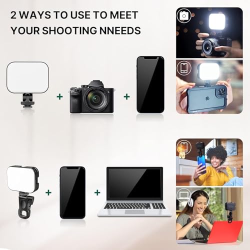 - 【تصميم خفيف الوزن ومحمول】بفضل تصميمه الصغير خفيف الوزن، يسهل حمل مصباح الفيديو الليد في جيبك أو شنطة الظهر، مما يتيح لك التقاط صور ومقاطع فيديو مذهلة أثناء التنقل. مثالي لمدونات الفيديو والبث المباشر وصور السيلفي ومكالمات الفيديو ودروس تعلم المكياج والمزيد.